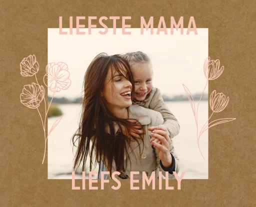 Maak mama blij met een cadeau in deze lieve cadeauverpakking! In het midden upload je een leuke eigen foto in de editor, daar pas je ook de tekst naar wens aan. Om de foto staan mooie getekende bloemen in roze. Verras je moeder met een mooi cadeau in deze speciale verpakking, daar wordt ze vast blij van!
