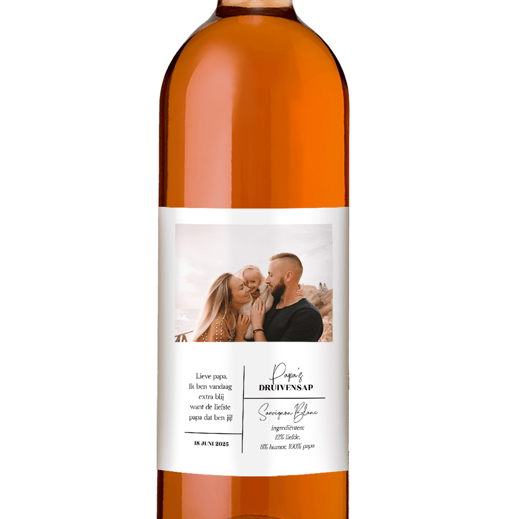 Een tof en uniek Vaderdag cadeau - gepersonaliseerde wijnetiketten. Personaliseer dit wijnetiket in de online editor. Voeg eventueel tekst en andere elementen toe. Zo maak je het etiket helemaal eigen.