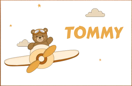 Een toffe toilettas met een vrolijke illustratie van een beertje in een vliegtuig. Daarnaast lees je de naam van het kindje.