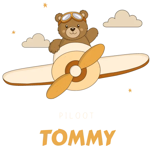 Kindertrolley met beertje in vliegtuig en naam