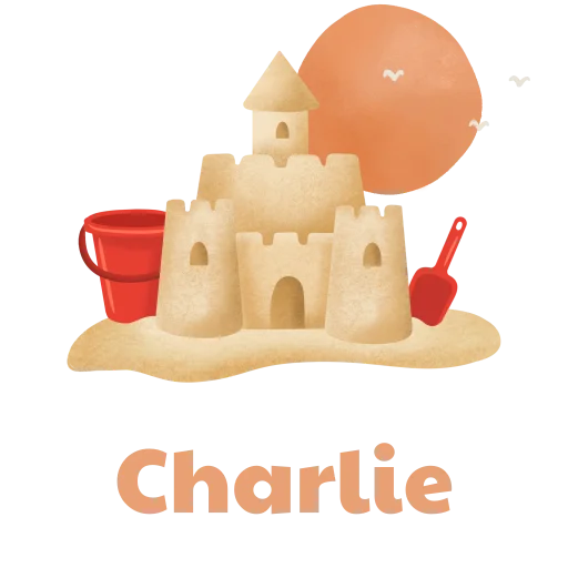 Kindertrolley met naam en zandkasteel