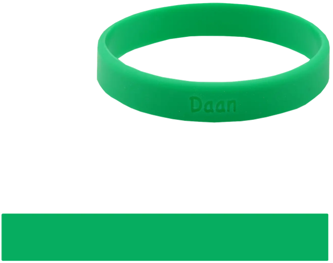 Een SOS bandje voor jouw kind. Laat de naam of een telefoonnummer op het bandje graveren. Op de afbeelding zie je een voorbeeld van hoe de tekst in het bandje wordt gegraveerd.
