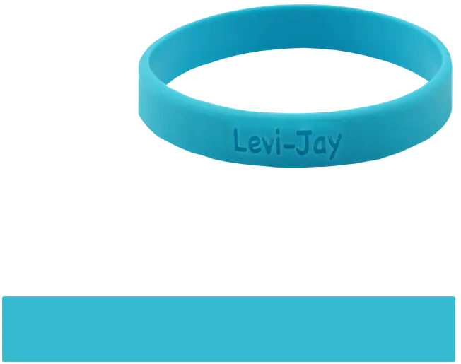 Een SOS bandje voor jouw kind. Laat de naam of een telefoonnummer op het bandje graveren. Op de afbeelding zie je een voorbeeld van hoe de tekst in het bandje wordt gegraveerd.