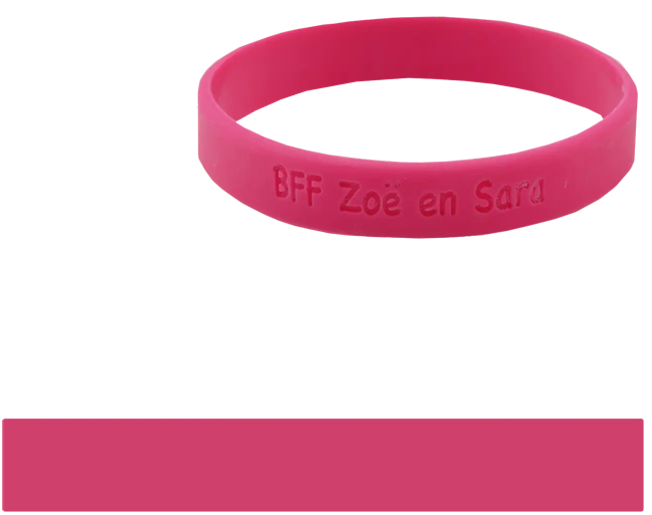Een SOS bandje voor jouw kind. Laat de naam of een telefoonnummer op het bandje graveren. Op de afbeelding zie je een voorbeeld van hoe de tekst in het bandje wordt gegraveerd.