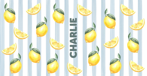 Een toffe RVS drinkfles met naam. De fles heeft een streepjespatroon en verschillende citroenen. Pas het ontwerp naar wens aan.