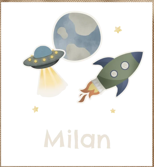 Rugtas classic met heelal thema en naam