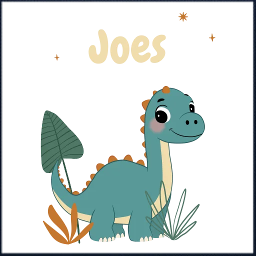 Een lief rugzakje met naam en een illustratie van een kleurrijke dino. Pas het ontwerp naar wens zelf aan.