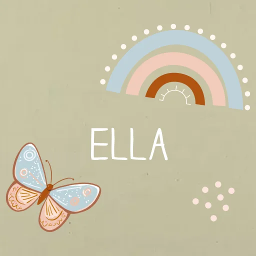 Katoenen tas met naam, vlinder en regenboog