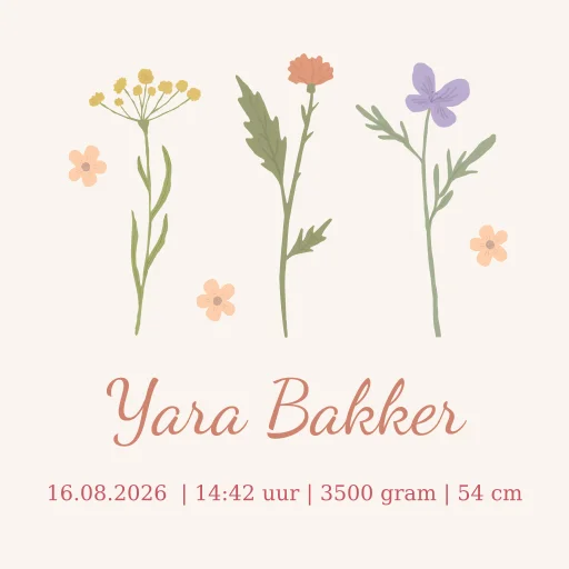 Canvas poster met naam en bloemen